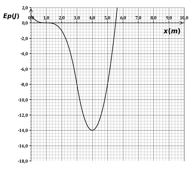 On relève quelques valeurs de `E_p` du graphe `E_p(x)`, puis on calcule
